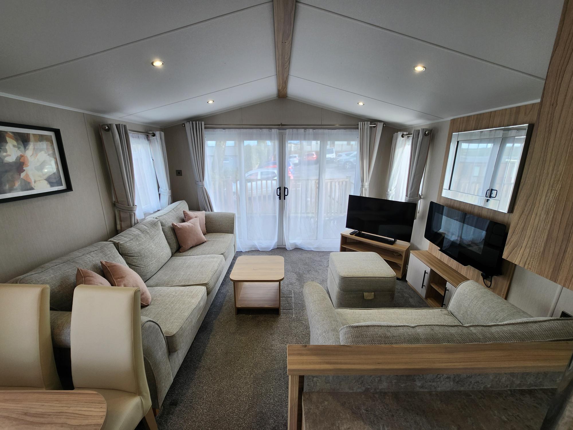 The Willerby Manor is a popular lodge, featuring modern touches whilst boasting a spacious and luxurious atmosphere throughout. The open plan kitchen and living area is great for relaxing and spending time with friends and family. The kitchen also has an abundance of modern touches such a soft close cabinets and plinth lighting. The bedrooms are spacious and the neutral and soft furnishings continue throughout the entire space, making the lodge feel luxurious and comfortable. This holiday home makes for a perfect home away from home!